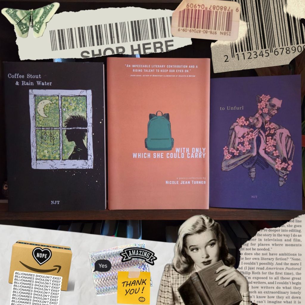 chapbooks: to Unfurl (2023) is available online while supplies last, and Coffee Stout & Rain Water (2017) is out of print.