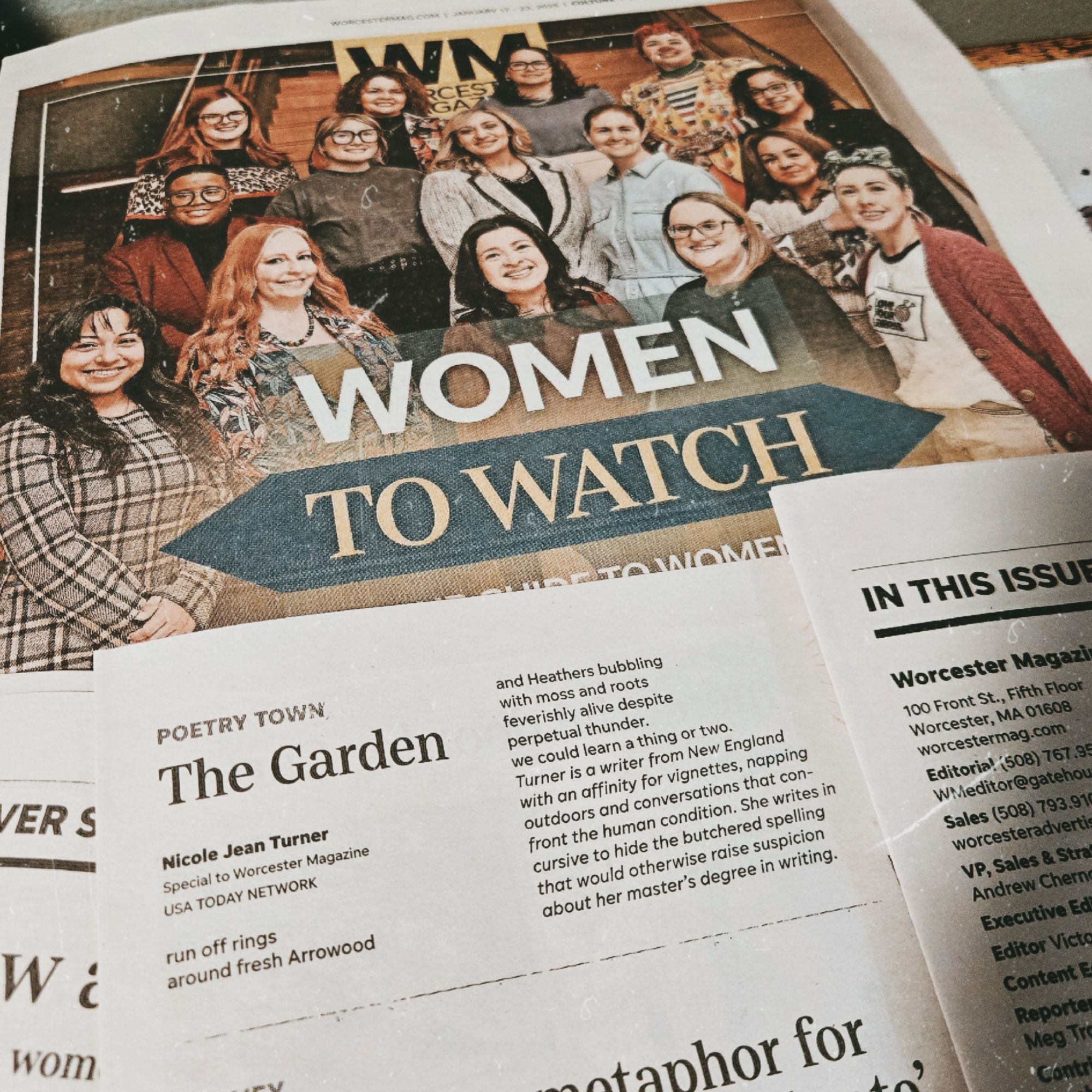 - Poem: “The Garden”, Worcester Magazine’s 2025 Women to Watch issue in the Telegram & Gazette, Print & Digital. January 2025
