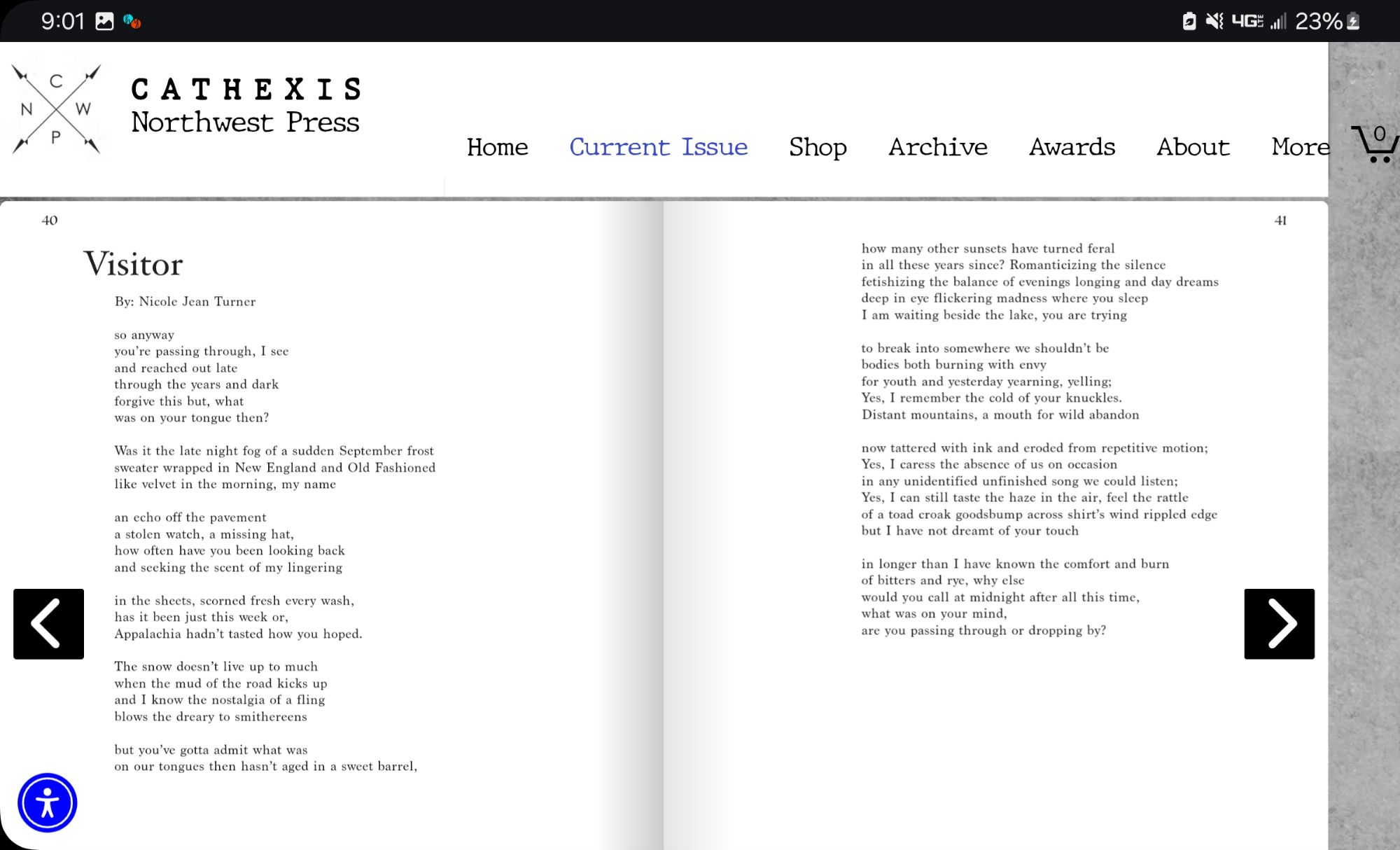 - Poem: “Visitor”, Cathexis Northwest Press Spring, Digital. March 2025